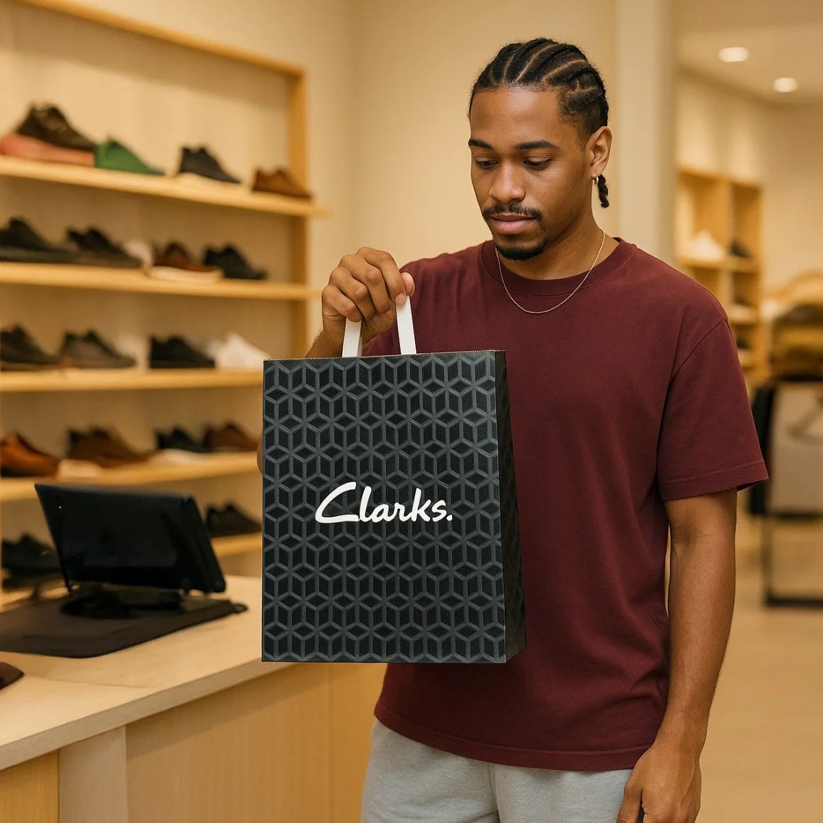 We’ll send you this Clarks-branded RePapaPac® mock up - or feel free to provide us with your own design!